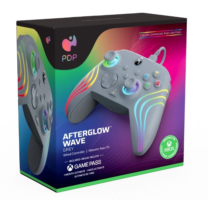 PDP Afterglow Wave Controller - oficjalnie licencjonowany kontroler dla Xboxa i Windows, z konfigurowalnym oświetleniem i ergonomicznym designem dla komfortu i precyzji.