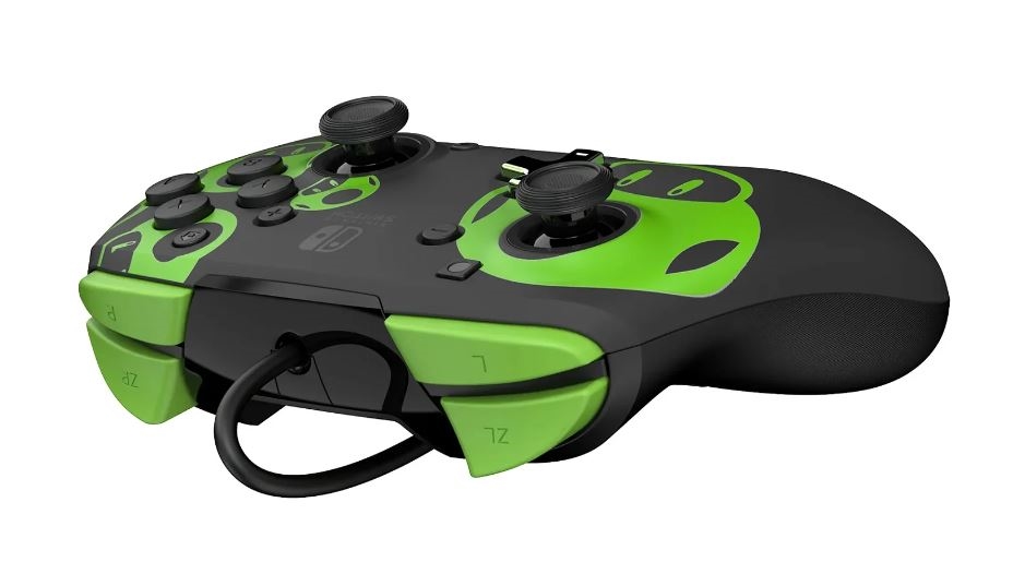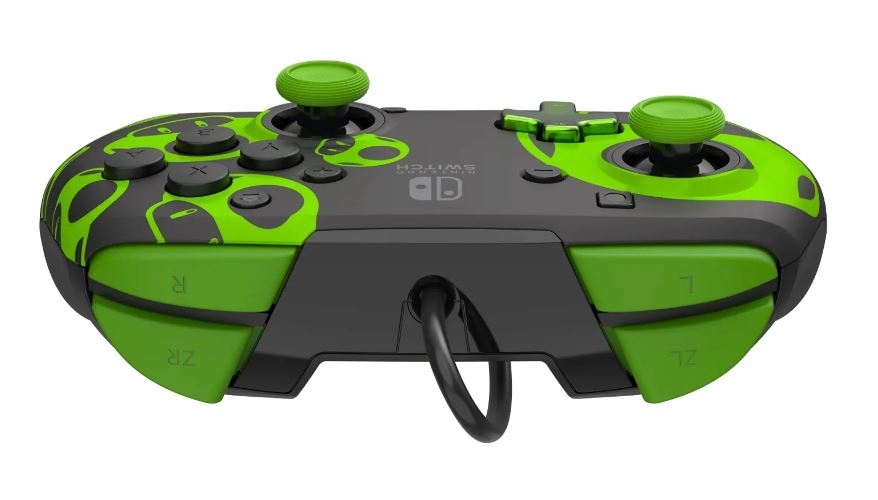 PDP to elegancki przewodowy kontroler do konsoli Nintendo Switch z pryzmatycznym podświetleniem LED, gniazdem (jack 3,5 mm) do podłączenia zestawu słuchawkowego, 3-metrowym odłączanym kablem i regulacją głośności bezpośrednio na padzie kierunkowym.
