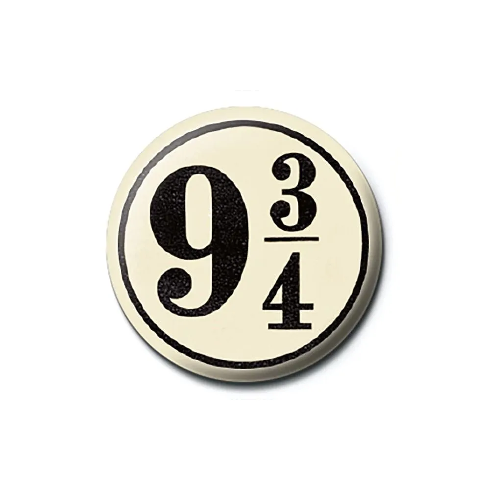 Ładna przypinka z logo Peronu 9 i 3/4, skąd odjeżdża Pociąg do Hogwartu w świecie Harry'ego Pottera. Świetny dodatek do twojego plecaka lub kurtki.