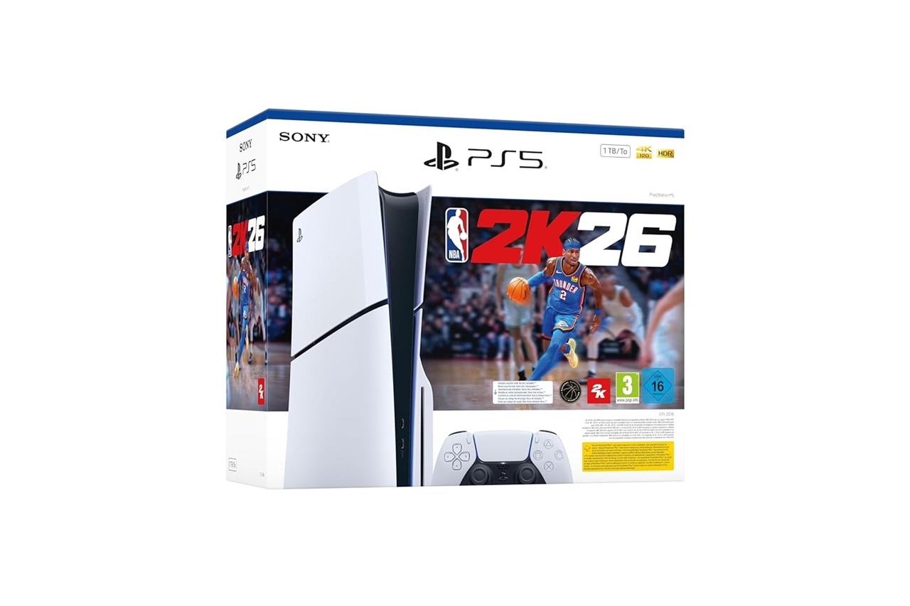 Zestaw, w którym w opakowaniu oprócz konsoli i akcesoriów znajduje się kod do pobrania gry NBA 2K26