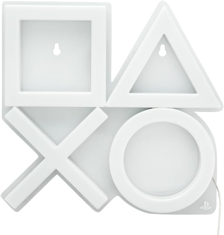 25 cm wysokie światło naścienne pokazuje natychmiast rozpoznawalne ikony kontrolera PlayStation - trójkąt, koło, krzyż i kwadrat. Dzięki jaskrawemu, wielokolorowemu światłu idealnie pasuje do każdego gamingowego pokoju. Zasil światło za pomocą dołączonego kabla USB.