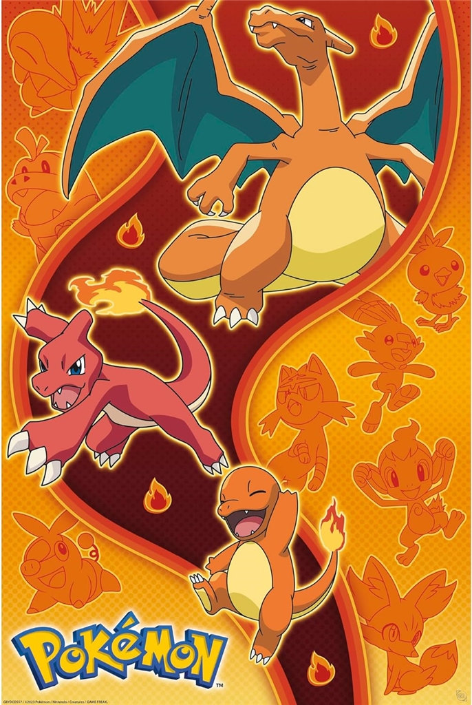 Rozświetl swoją ścianę tym plakatem Pokémon Fire, sprawdź ewolucję Charmandera w Charmeleona i Charizarda oraz wiele innych ognistych Pokémonów na tym plakacie od GB Eye. Wymiary.