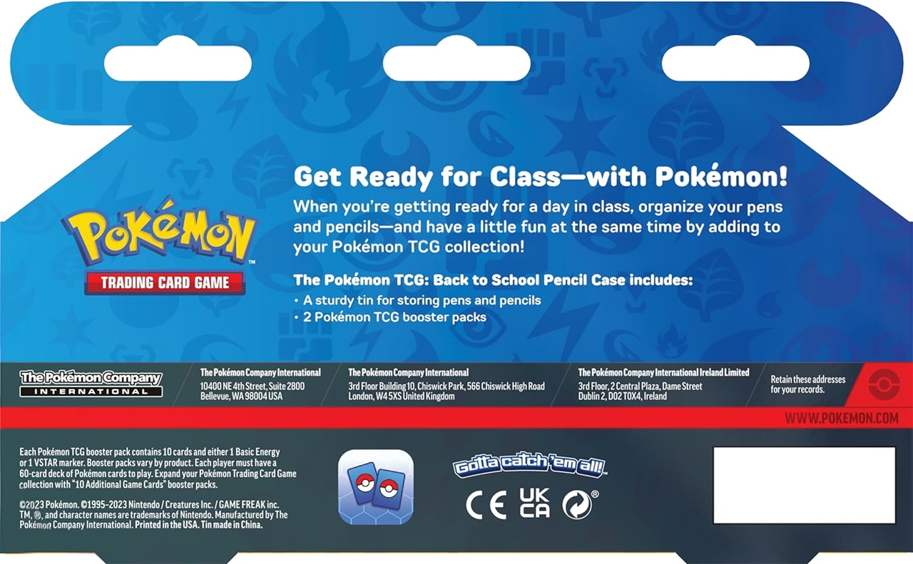 Ten piękny blaszany piórnik ma idealny rozmiar, aby zabrać swoje ulubione karty w podróż i jednocześnie je uporządkować! Zawiera 2 pakiety boosterów Pokémon TCG, aby poszerzyć swoją kolekcję. Przygotowując się do szkoły, uporządkuj swoje długopisy i ołówki - i jednocześnie baw się dobrze, powiększając swoją kolekcję Pokémon TCG!
