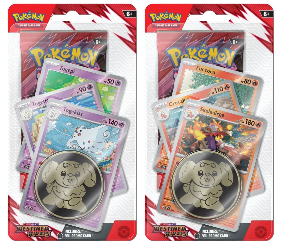 Trenerzy pokémonów, bądźcie czujni! Złowrogi Team Rocket rozpoczyna swój najnowszy plan, a bohaterowie trenerzy starają się go powstrzymać. Dołącz do takich trenerów, jak Cynthia z Garchomp ex, Ethan z Ho-Oh ex czy Arven z Mabosstiff ex... Lub przemyśl swoją lojalność i walcz u boku Pokémonów teamu Rocket, takich jak Mewtwo ex pod dowództwem Giovanniego! Wybierz stronę, zgromadź swoich sojuszników i odważnie walcz w edycji Pokémon TCG: Scarlet & Violet - Destined Rivals!