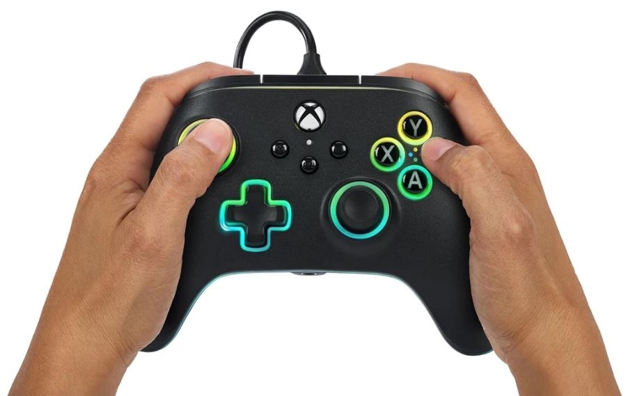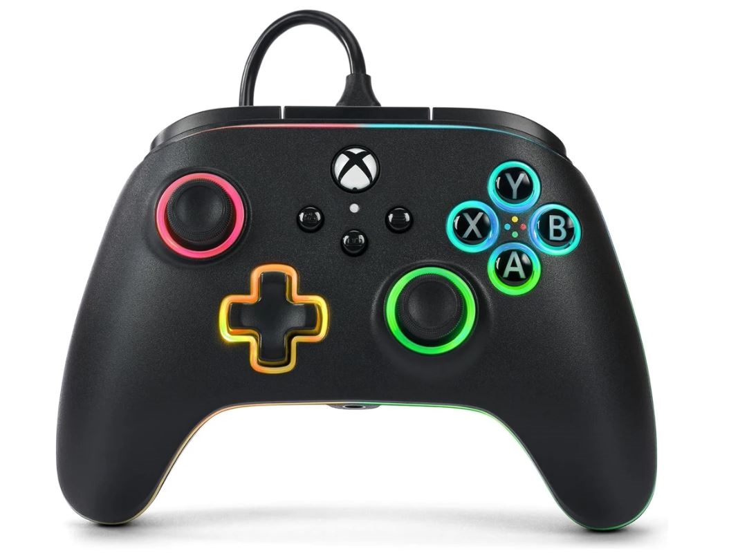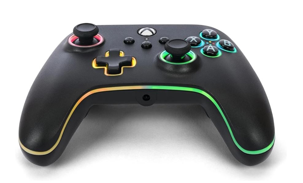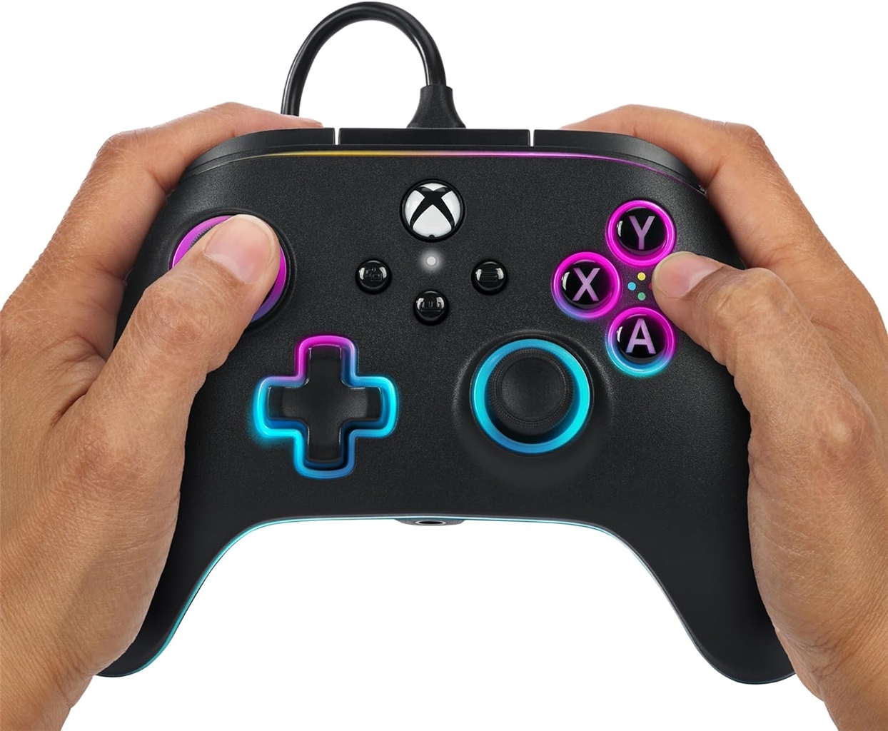 Przewodowy kontroler do gier PowerA Advantage Lumectra do konsol Xbox Series, Xbox One i komputerów PC jest wyposażony w wiele funkcji zapewniających najwyższą jakość rozgrywki. Posiada gniazdo jack (3,5 mm), odłączany 3-metrowy kabel USB-C, przycisk udostępniania, intuicyjny układ przycisków, trójdrożne blokady spustów, reakcję dotykową, podwójne silniki dudniące i wielostrefowe oświetlenie RGB.