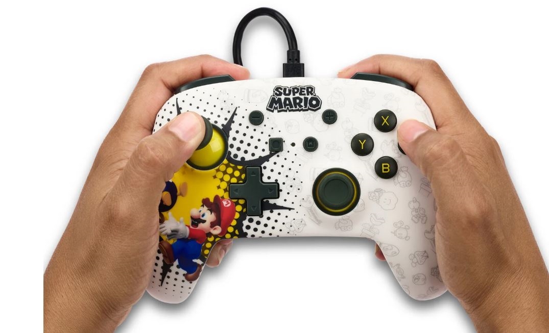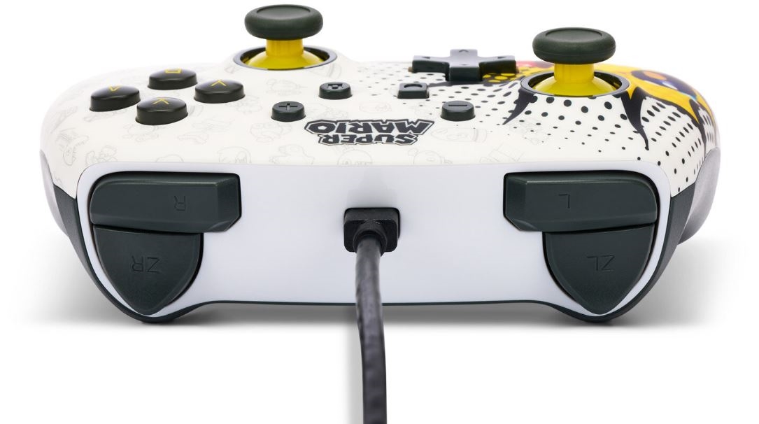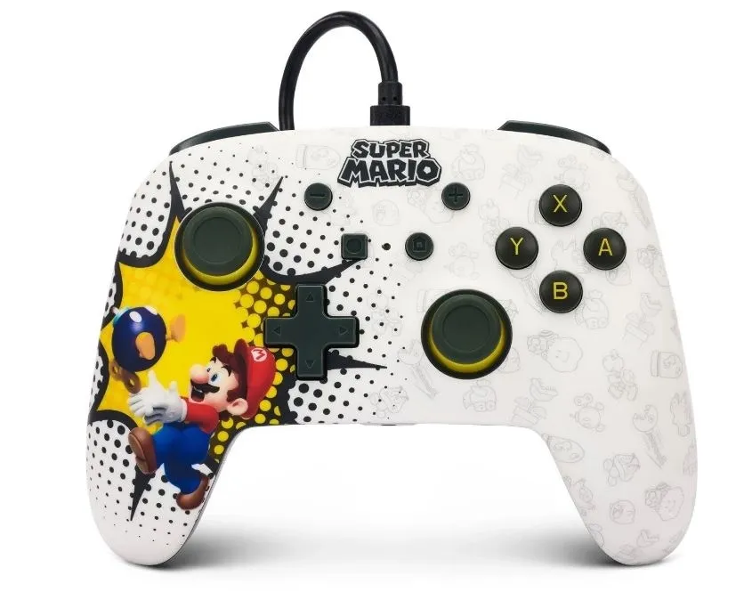 Przewodowy kontroler do gier PowerA do konsoli Nintendo Switch jest wyposażony w gniazdo 3,5 mm do podłączenia zestawu słuchawkowego, kabel USB o długości 3 m, programowalne zaawansowane przyciski do gier i standardowy układ przycisków. Producent: PowerA, długość kabla: 3 m, programowalne przyciski.