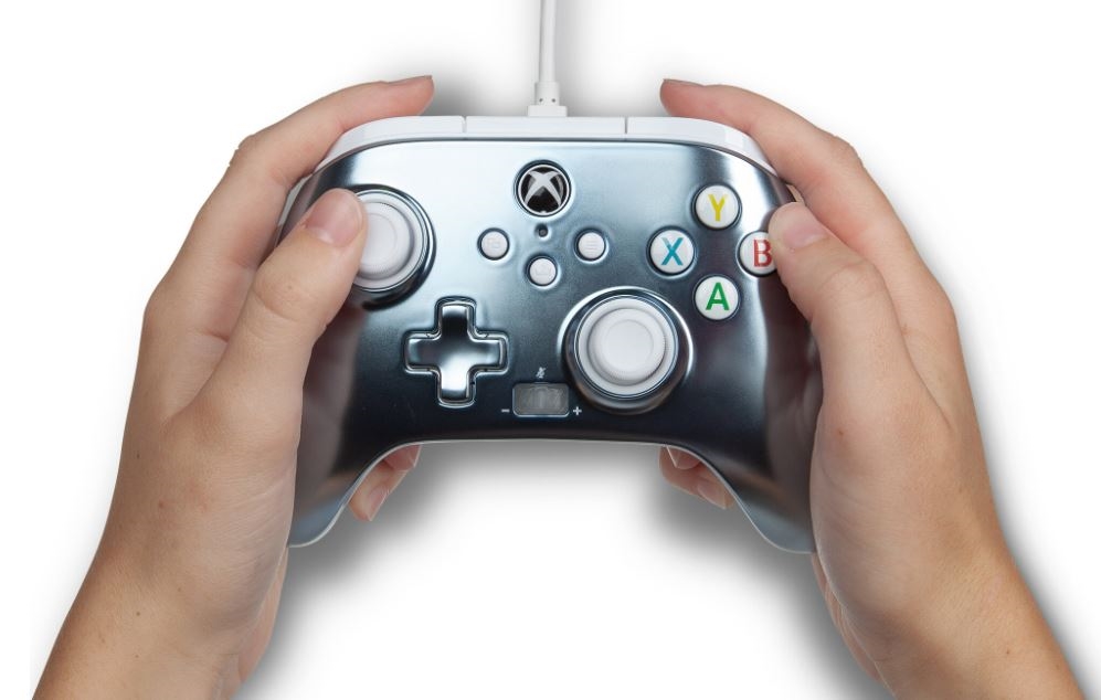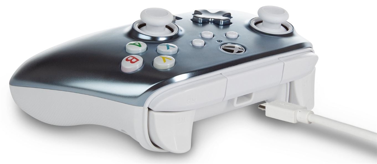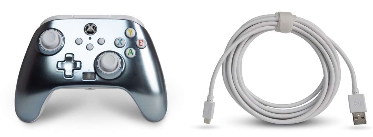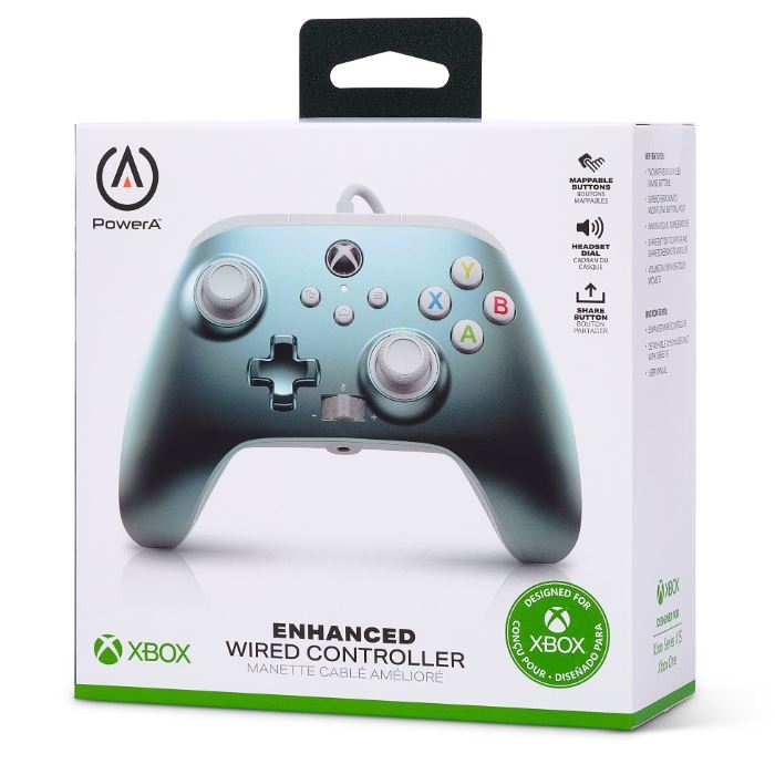 Przewodowy kontroler gier PowerA do konsol Xbox Series, Xbox One i komputerów PC, wyposażony w gniazdo 3,5 mm do podłączenia zestawu słuchawkowego, odłączany kabel, przycisk udostępniania. Producent: PowerA, długość kabla: 3 m, programowalne przyciski.