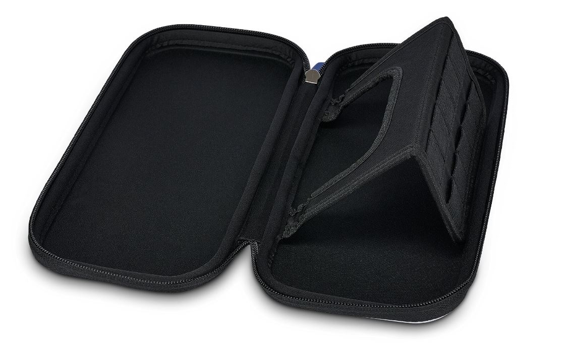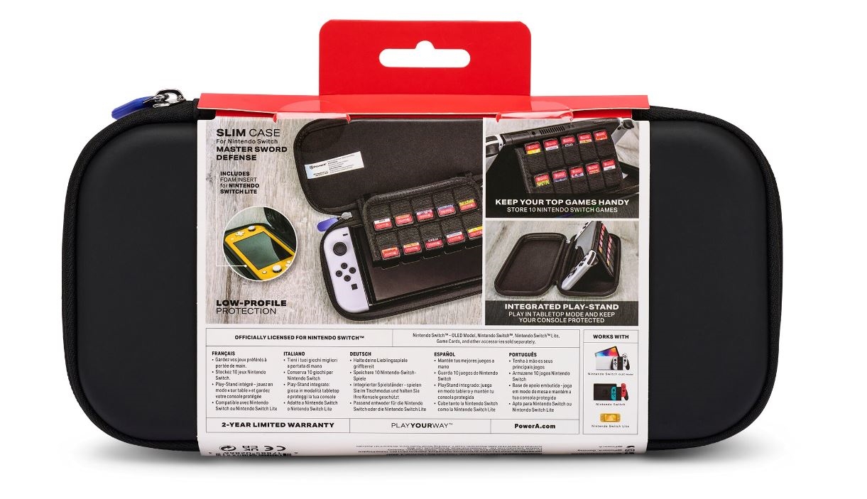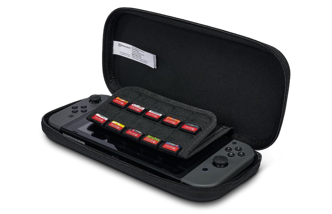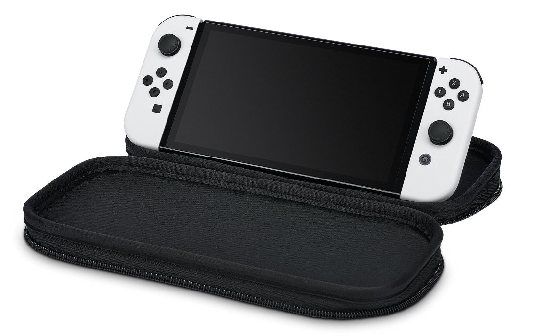 Etui PowerA Slim Case do konsoli Nintendo Switch, OLED i Switch Lite chroni konsolę w podróży i umożliwia jej bezpieczne przenoszenie. Poręczny układ wewnętrzny pozwala na przechowywanie 10 kart z grami. Dużą zaletą jest zintegrowana wewnętrzna podstawka do podparcia konsoli.