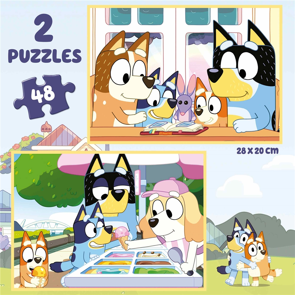 Zestaw puzzle Bluey zawiera 2 puzzle w praktycznej walizce do przechowywania. Każde puzzle ma 48 elementów i przedstawia sceny z Bluey oraz jej rodziną w ciepłych momentach. Idealne dla małych dzieci, które uwielbiają Bluey i lubią zabawną i kreatywną zabawę. Walizka ułatwia przenoszenie puzzli podczas podróży - zabierz je ze sobą wszędzie!