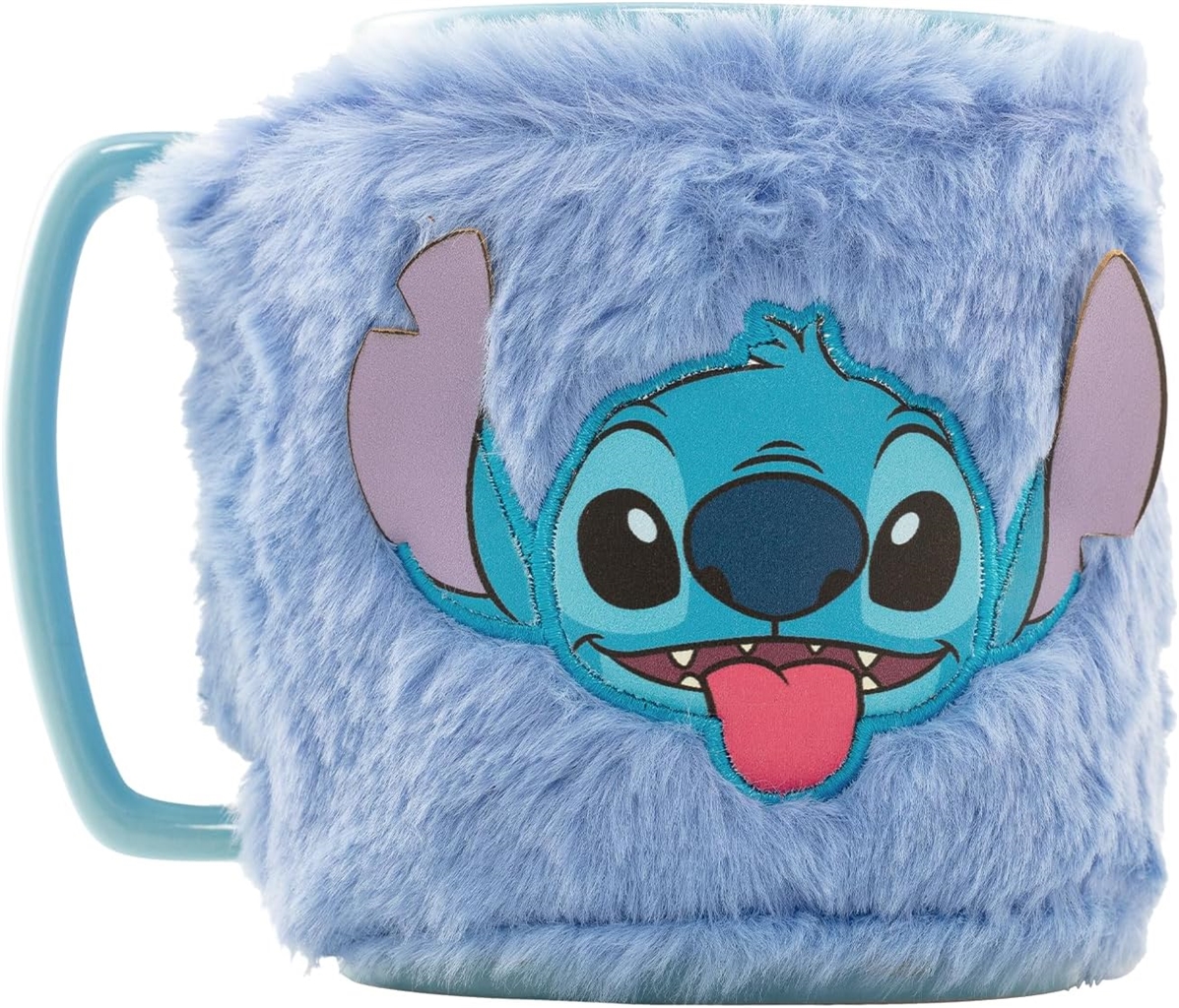Wysokiej jakości ceramiczny kubek z motywem ulubionego Stitcha z puchatym pluszowym pokrowcem na rzep. Ten uroczy kubek o pojemności 440 ml świetnie sprawdzi się przy piciu gorących napojów, gdy dzięki pluszowemu pokrowcowi nie oparzysz sobie rąk.