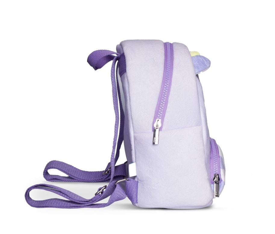 Ten mini plecak Squishmallows jest wykonany z super miękkiego, uroczego pluszu i ozdobiony haftem. Plecak ma mniejszą wewnętrzną kieszeń zapinaną na zamek i regulowane paski na ramię. W komplecie znajduje się para miękkich uszu 3D.