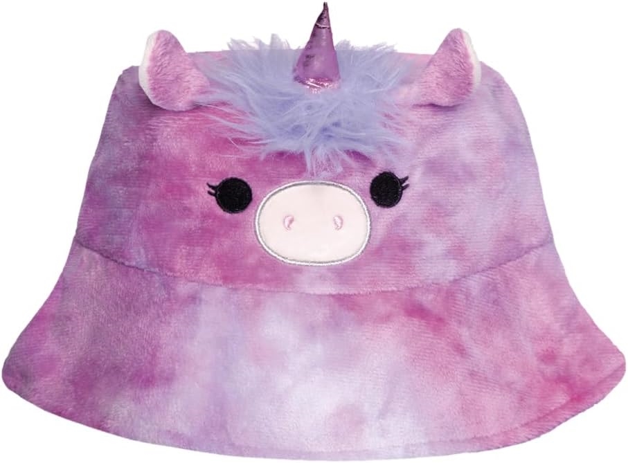 Czapka Squishmallows z wycięciem w kształcie wiaderka jest wykonana z super miękkiego pluszu, przypominającego piankę i jest ozdobiona haftem.