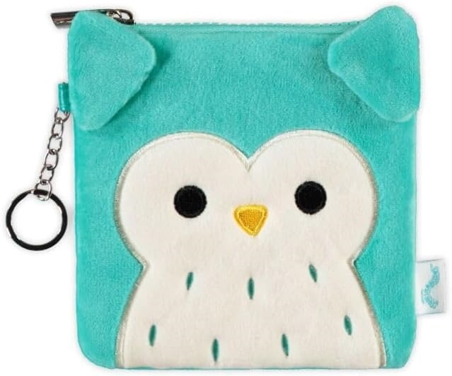 Zapinany na zamek portfel Squishmallows jest wykonany z super miękkiego pluszu, przypominającego piankę i jest ozdobiony haftem. Ten uroczy portfel został zaprojektowany tak, aby wyglądał jak sowa Winston i ma parę miękkich uszu 3D, które wystają z góry.