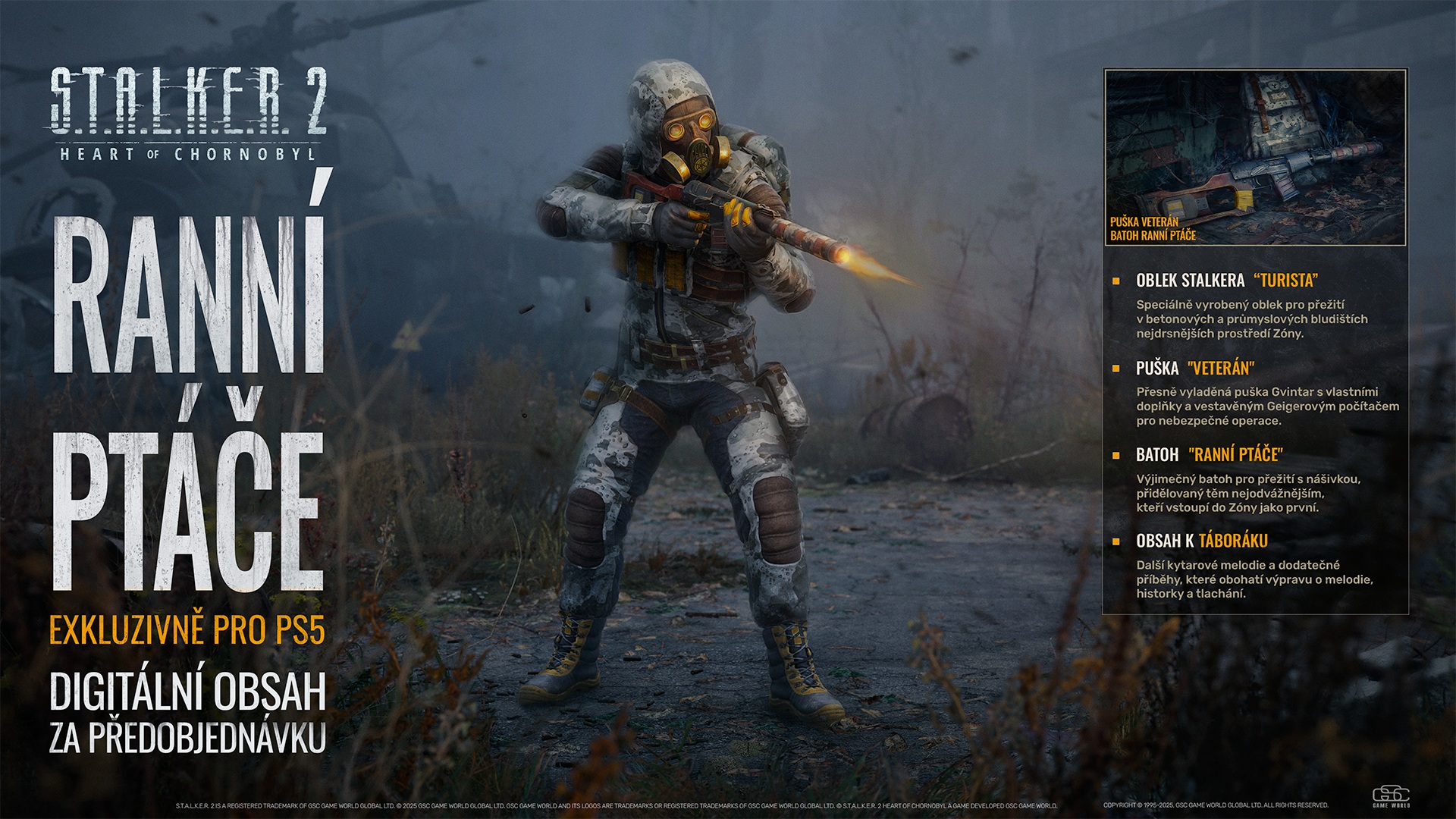 Ponieważ premiera S.T.A.L.K.E.R. 2: Heart of Chornobyl na PlayStation®5 jest tuż za rogiem, czas przyjrzeć się nowym łupom, które czekają na tych, którzy zapewnią sobie miejsce na czas. W Day One Edition PS5 otrzymasz następujące cyfrowe bonusy: