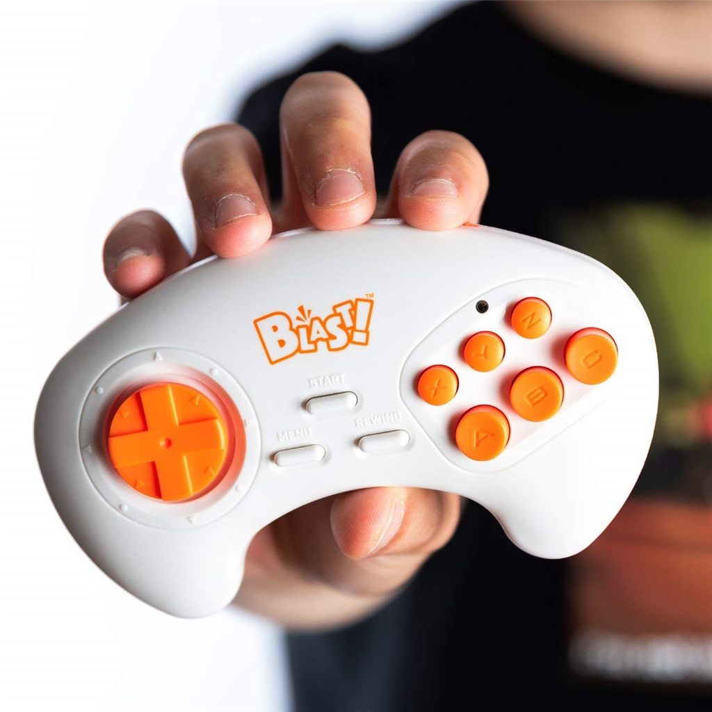 Zupełnie nowa seria konsol retro "Blast" łączy konsolę i kontroler w jednym. To najprostsza konsola, jaką kiedykolwiek stworzono - wystarczy podłączyć małe pudełko do gniazda HDMI w telewizorze, wziąć kontroler i grać. Żadnych kabli, żadnych skomplikowanych instalacji. Kontroler wymaga baterii, które nie są dołączone do zestawu