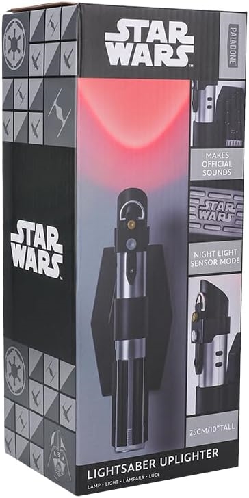 Lampa ścienna w formie miecza świetlnego z czerwonym promieniem Dartha Vadera nada domowi lub biuru fanów Gwiezdnych Wojen wyjątkowego charakteru. Lampka po włączeniu wydaje znane z Gwiezdnych Wojen dźwięki i można ją ustawić na tryb nocny - uruchomi się sama, gdy w pomieszczeniu zrobi się ciemno. Lampka jest zasilana 3 bateriami AAA (brak w zestawie).
