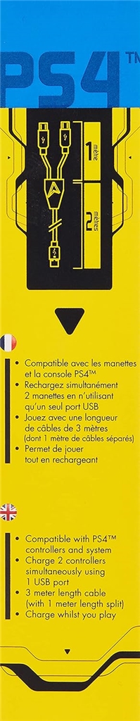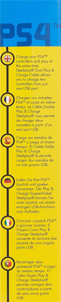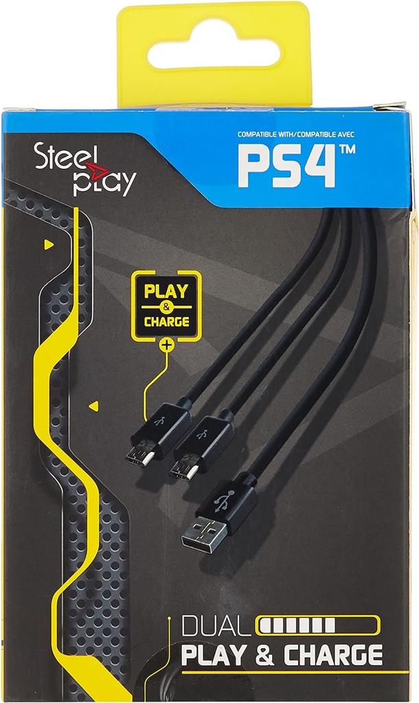 Kabel Steelplay Dual Play & Charge umożliwia ładowanie dwóch kontrolerów PS4 za pośrednictwem jednego portu USB Type-C. Wysokiej jakości kabel USB Type-C do USB-A ma 3 m długości, co zapewnia większy zasięg i szybkie ładowanie. Ładuje się tak szybko, jak oryginalny kabel PS4. Dzięki kablowi ładującemu USB-C można ładować kontrolery bezpośrednio na konsoli do gier lub komputerze i grać w tym samym czasie. Wbudowane zabezpieczenia przed zwarciem, przepięciem, przetężeniem i przegrzaniem zapewniają stabilne i bezpieczne ładowanie.