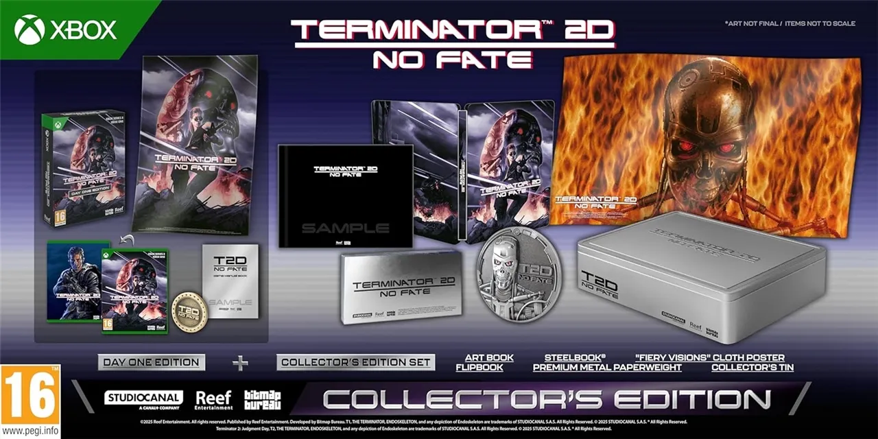 Zdobądź tę ekskluzywną edycję kolekcjonerską gry Terminator 2D: NO FATE i uzyskaj najpełniejsze doświadczenie ze świata Terminatora z mnóstwem unikalnych przedmiotów kolekcjonerskich!
