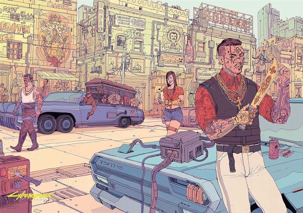 Pozbądź się nudy i ułóż designerskie puzzle! Good Loot prezentuje wysokiej jakości puzzle, które przeniosą fanów gier i popkultury do ich ulubionych światów fantasy. Valentinos, którzy rządzą latynoskimi regionami Heywood, są jednym z największych gangów Night City. Ale postrzegają siebie jako coś więcej - rodzinę związaną wielowiekowymi tradycjami i nietykalnym kodeksem moralnym, w którym honor i sprawiedliwość są śmiertelne. Rozmiar złożonej układanki wynosi około 85 x 58 cm.