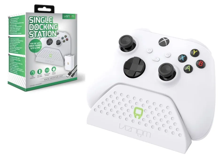 Estetycznie zaprojektowana, aby pasować do Twojej konsoli Xbox X Series, stacja dokująca posiada przedni wyświetlacz LED, który świeci na czerwono podczas ładowania i zmienia kolor na zielony, gdy kontroler jest w pełni naładowany.