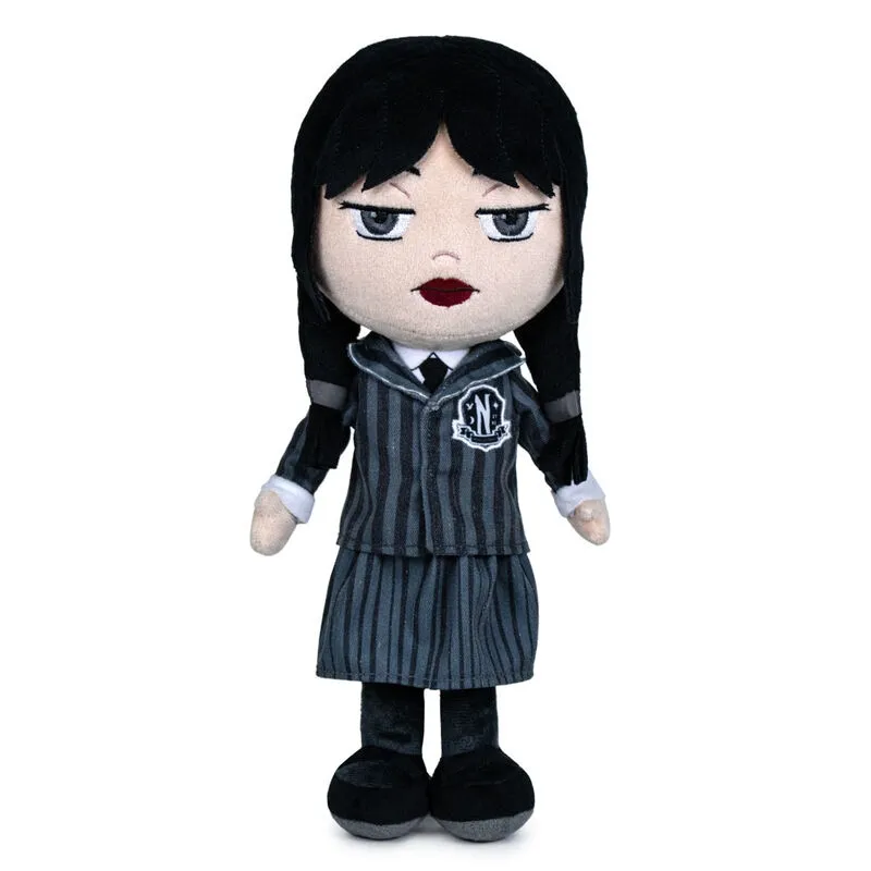 Pluszowa zabawka Wednesday zachwyci każdego fana tego serialu Netflix lub Rodziny Addamsów! 40-centymetrowa Wednesday z haftowanymi detalami jest wykonana z przyjemnego, miękkiego materiału i nie może jej zabraknąć w żadnej przerażającej kolekcji.